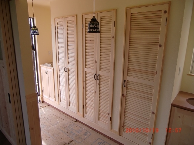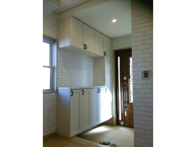 玄関にシューズボックスを、また洗面化粧台を設置しました。