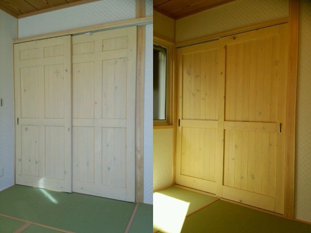 建具の特長としては、既製品の木調建具より軽く製造出来るので、蝶番戸車等が長持ちします。
