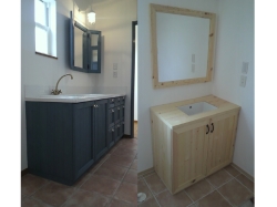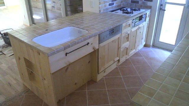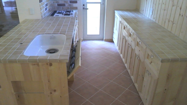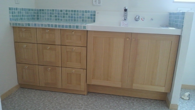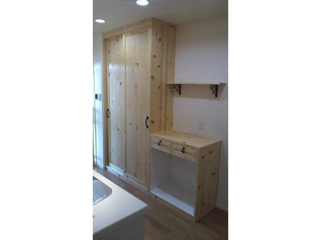 S様邸新築物件に納めさせていただきました、キッチンバック棚とレンジ台です。